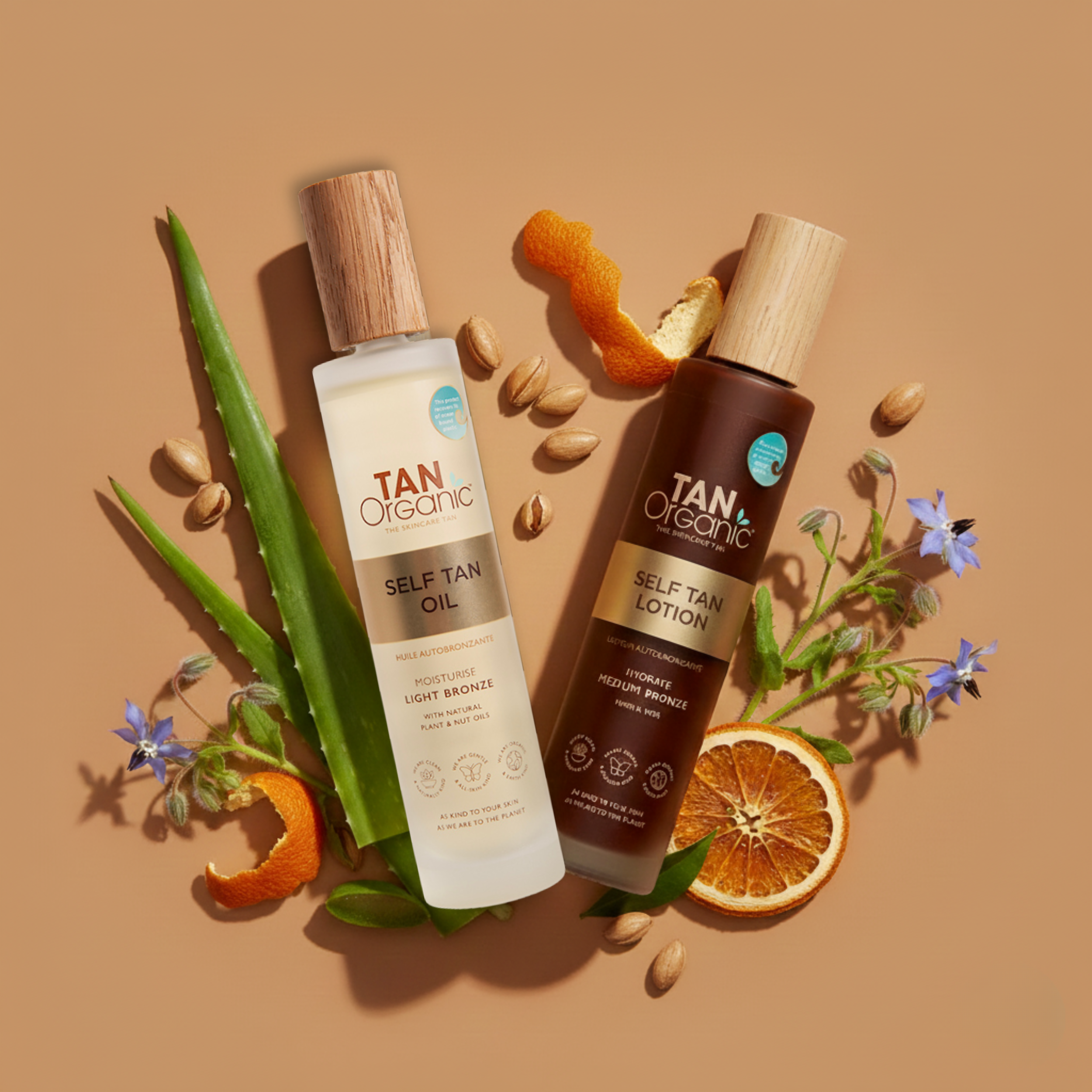 Experience our organic self tan range delivering a hydrating glow without orange or olive tones. Pick from organic tanning lotion, fake tan oil and non toxic face tanning for a streak-free colour.